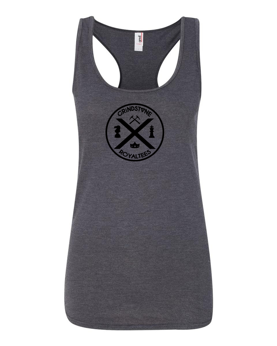 ANVIL LADIES RACERBACK DARK HEATHER 6751L ROUND BLACK LOGO